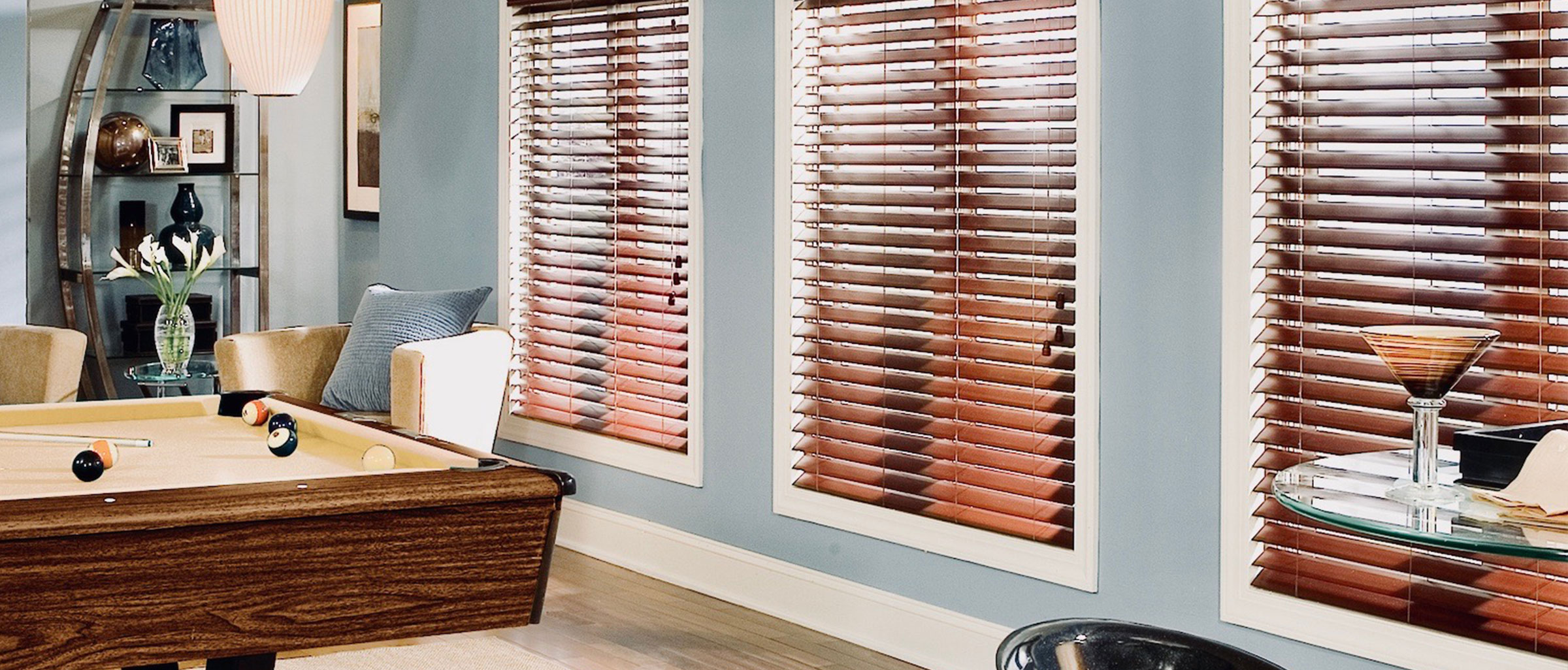Wood blinds are a natural and durable option.The classic elegance of both paint-based and rich wood stains add to the warmth and beauty of wood to any room.