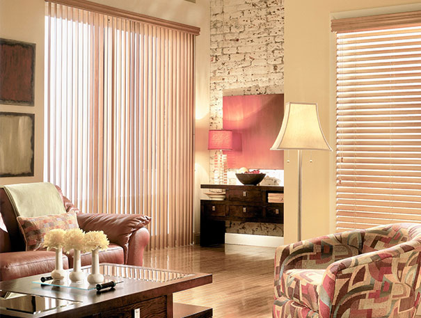 Window blinds can create a contemporary or traditional style. Choose from vertical blinds, wood blinds, or softwood blinds.